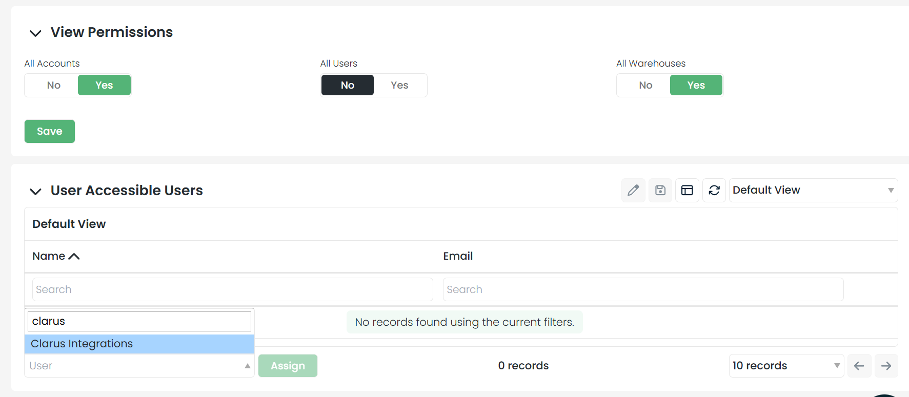 Adjust Visibility Toggles: You will see options to view all accounts, warehouses, and users. Switch the "View All Users" toggle to No.
